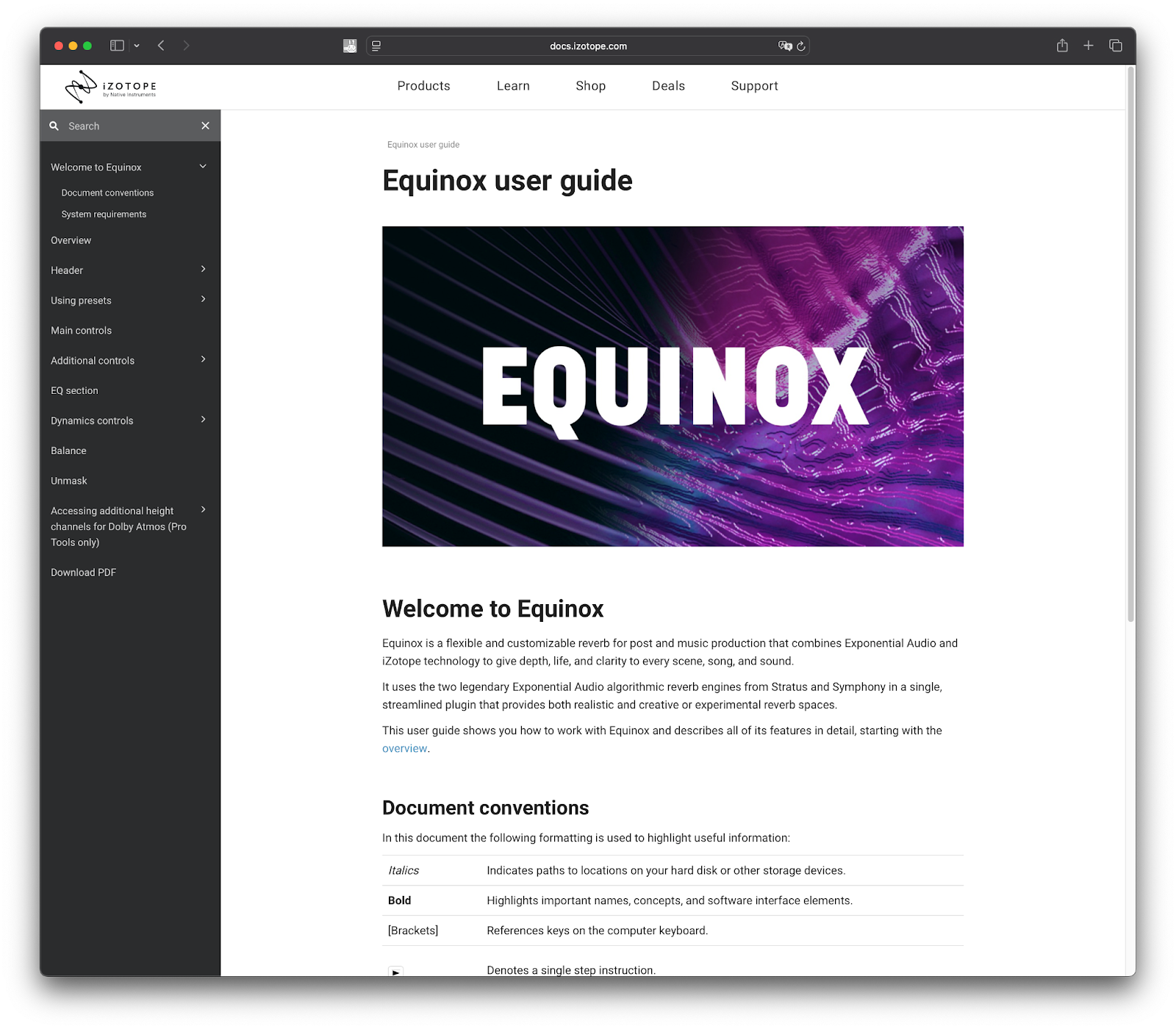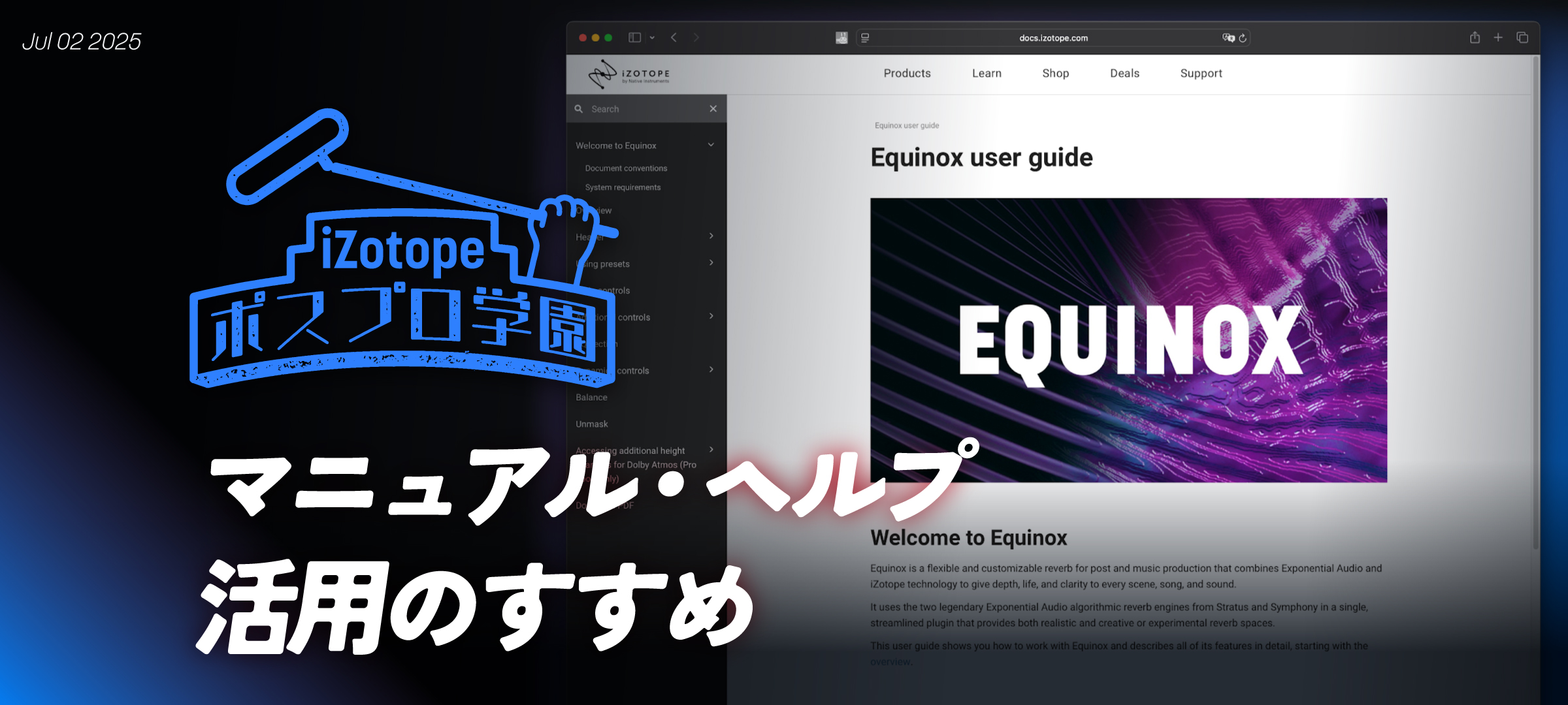 iZotopeの製品にはヘルプやマニュアルが用意されています。製品の使用方法は、iZotope AsiaのYouTubeやブログでも調べることができますが、マニュアルを見ることで動画やブログではカバーされていない細かい事を調べることができます。