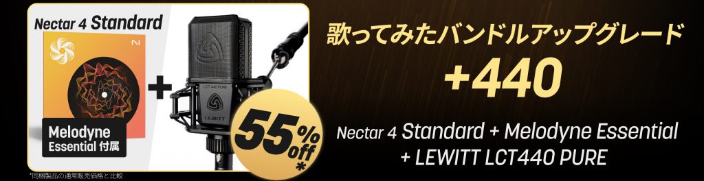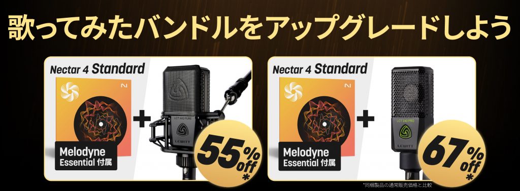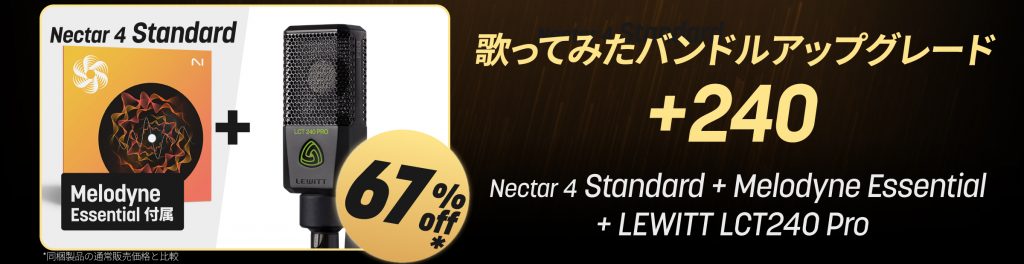 Nectarのアップグレード(Elements→Standard)に、LEWITTによるボーカルレコーディングのベストセラー・コンデンサーマイクを同梱したバンドルをはじめ、環境のアップデートしたい皆さんのお役に立てるセールをご紹介します。