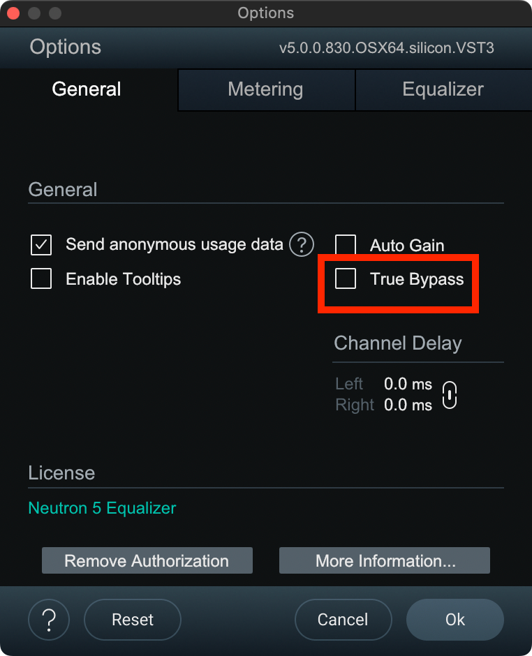 True Bypassのチェックが外れた状態をデフォルトに設定できるように