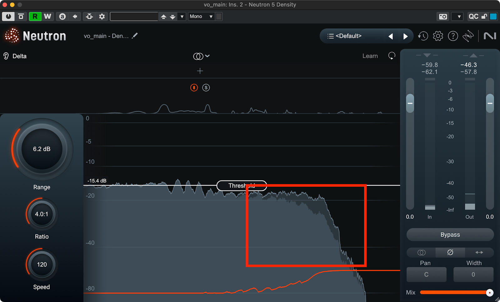 フレーズの終わりで聞き取りづらくなった部分(赤枠で囲んだ部分)のボーカルを自然に持ち上げる様子