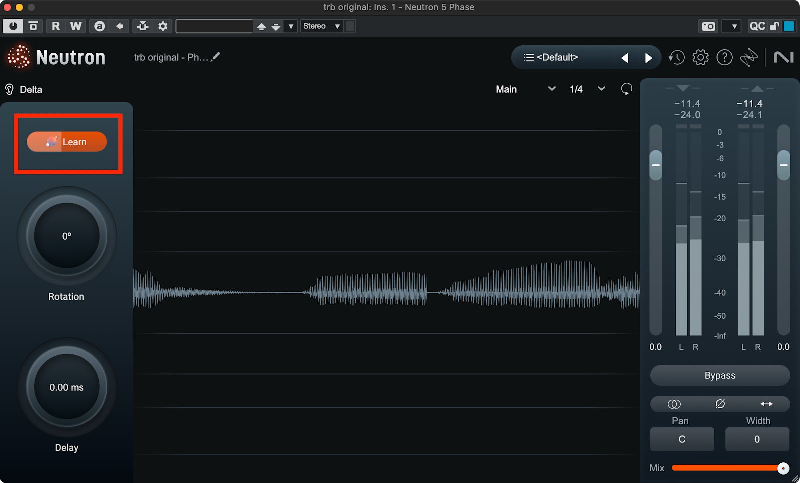 Learnを押してからトラックを再生すると位相をどの程度回転させるべきか自動的に算出してくれる