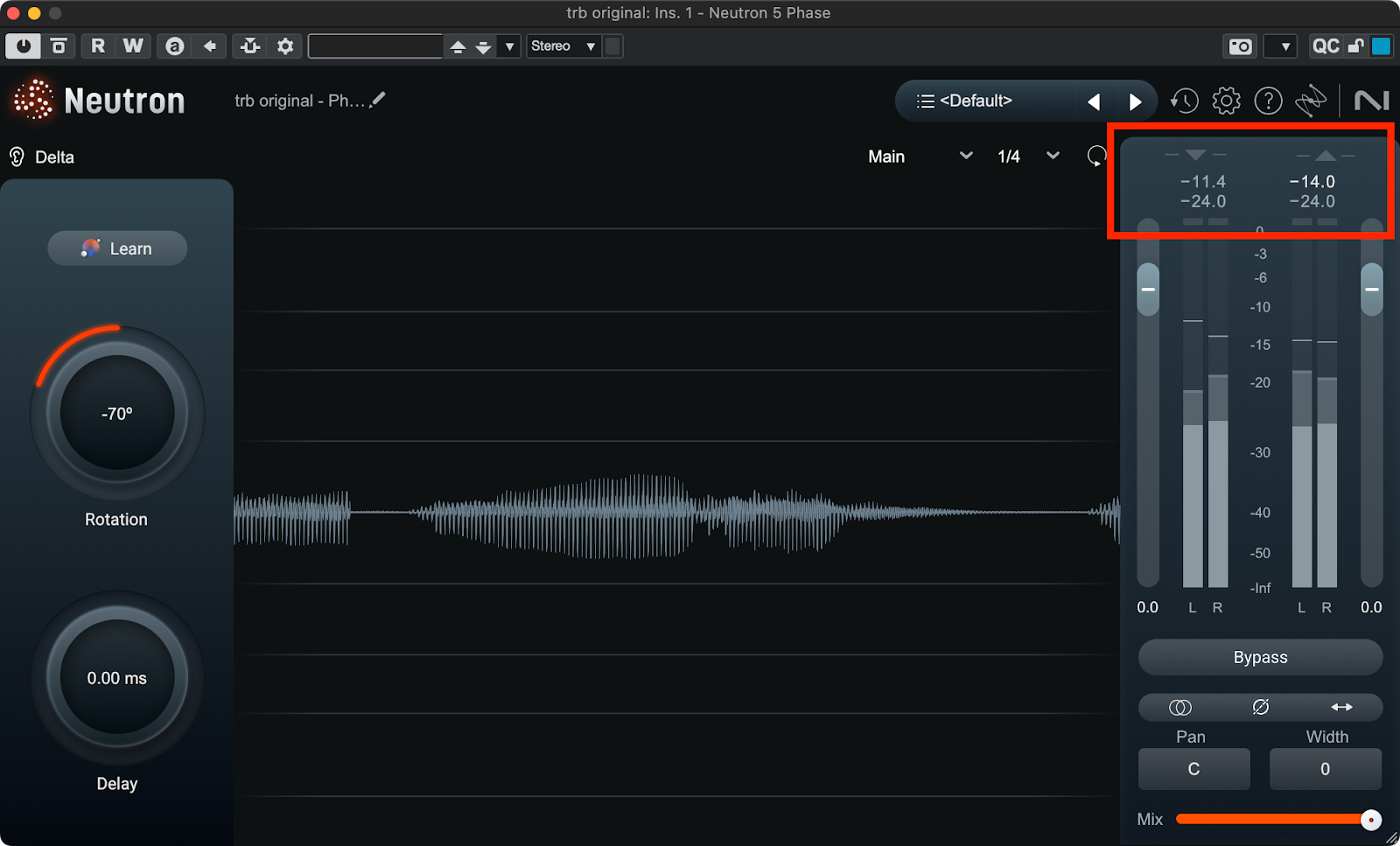 Phaseモジュール自体で音の聞こえ方は変わりませんが、ピークレベルが下がりヘッドルームを広げることができます。