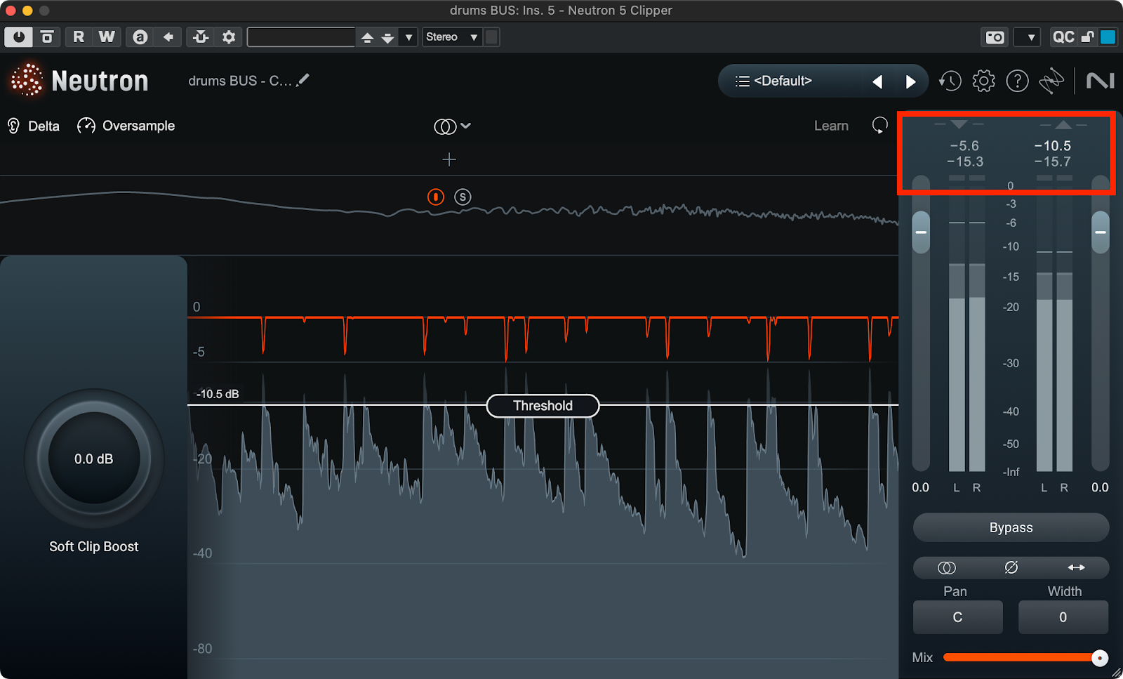 Clipperにより、例えばドラムのピークレベルを抑えることができる他コンプレッサーやトランジェントシェイパーではできない音作りも可能です。例えば、低域や中域にClipperを使うことで歪みを発生させ明るい印象の音にすることができます。