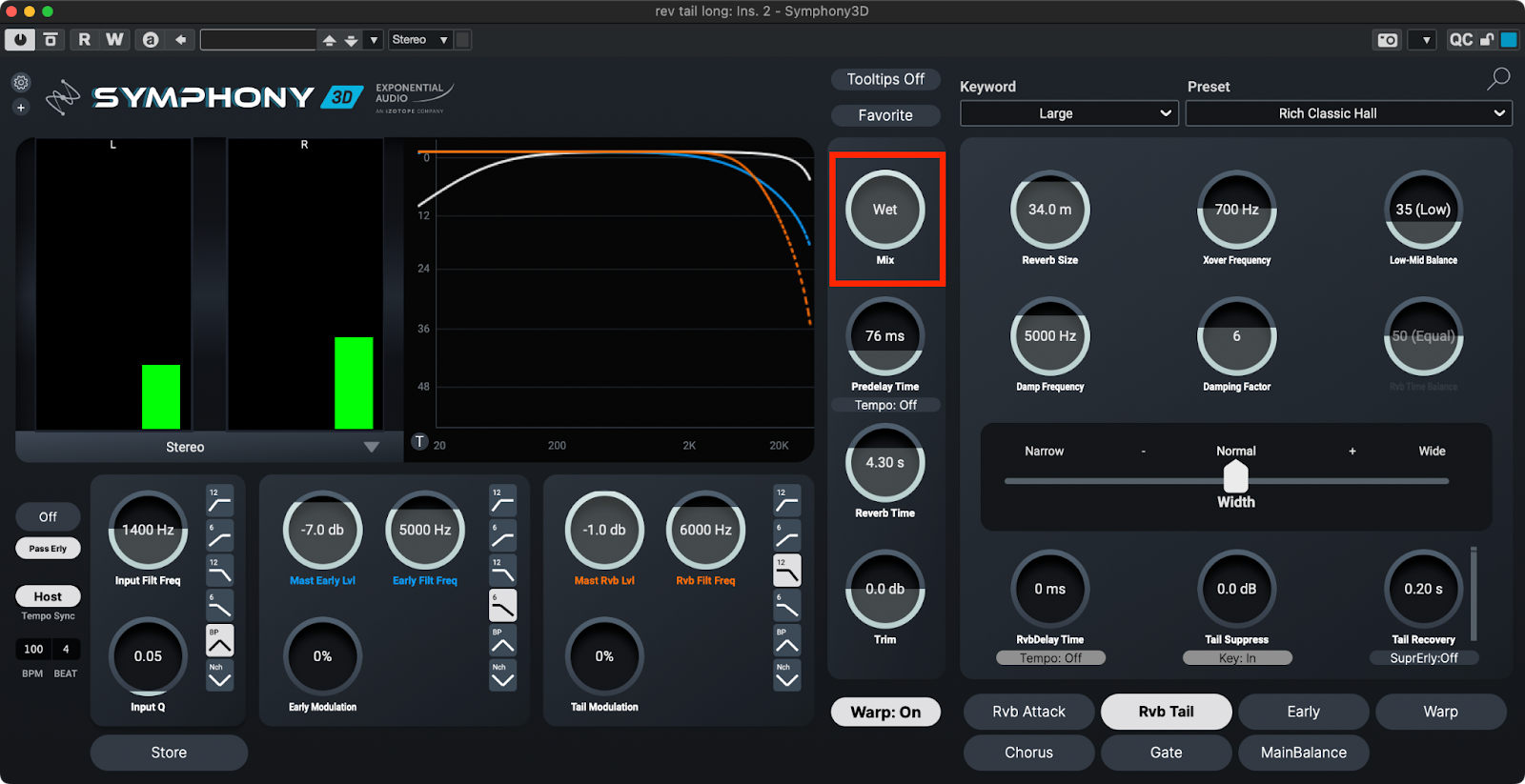 使うリバーブは何でもOKなのですがここではSymphonyを使ってみましょう。Symphonyの使い方についてはこちらの動画をご覧ください。