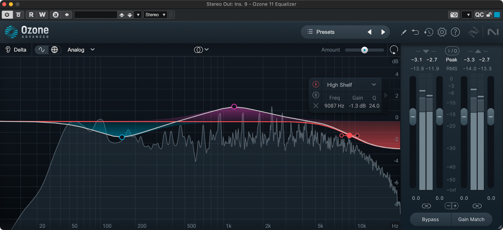 スペクトラムの上下方向のスケールもNeutronやNectarのEQと比べるとズームインした状態になっています。つまり視覚的に大きな変化をつけてもカット/ブースト量が比較的小さくなるようにデザインされています。