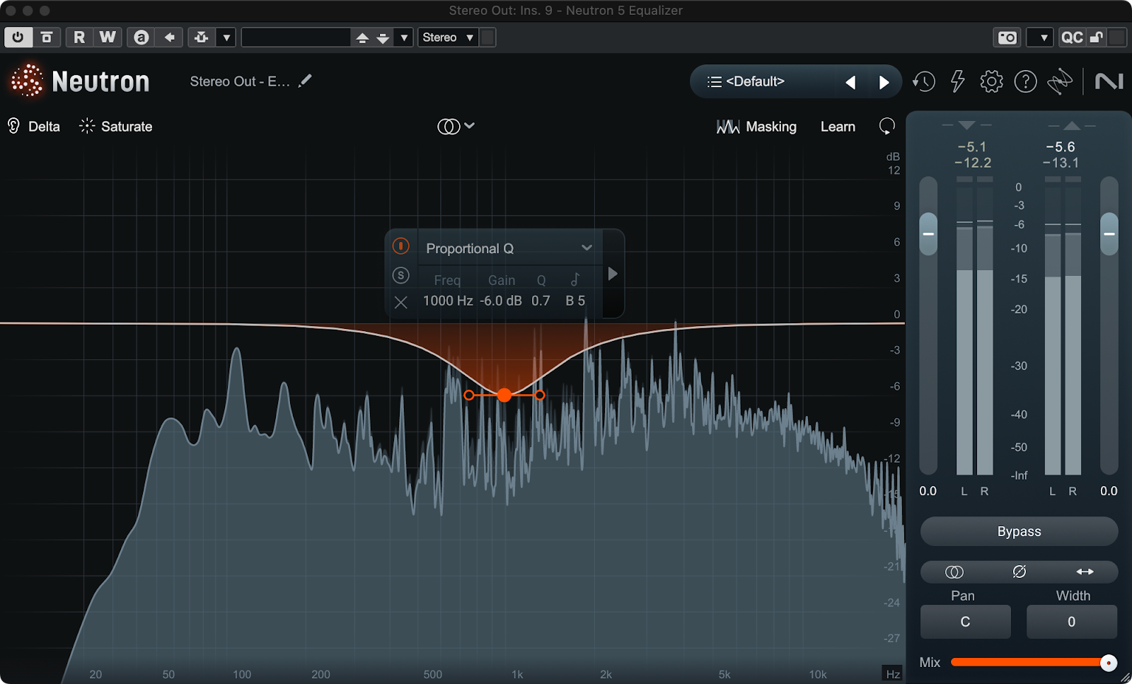 Neutronで1,000HzをQ0.7で6dBカットした様子。Ozoneよりも変化が視覚的に小さく見える