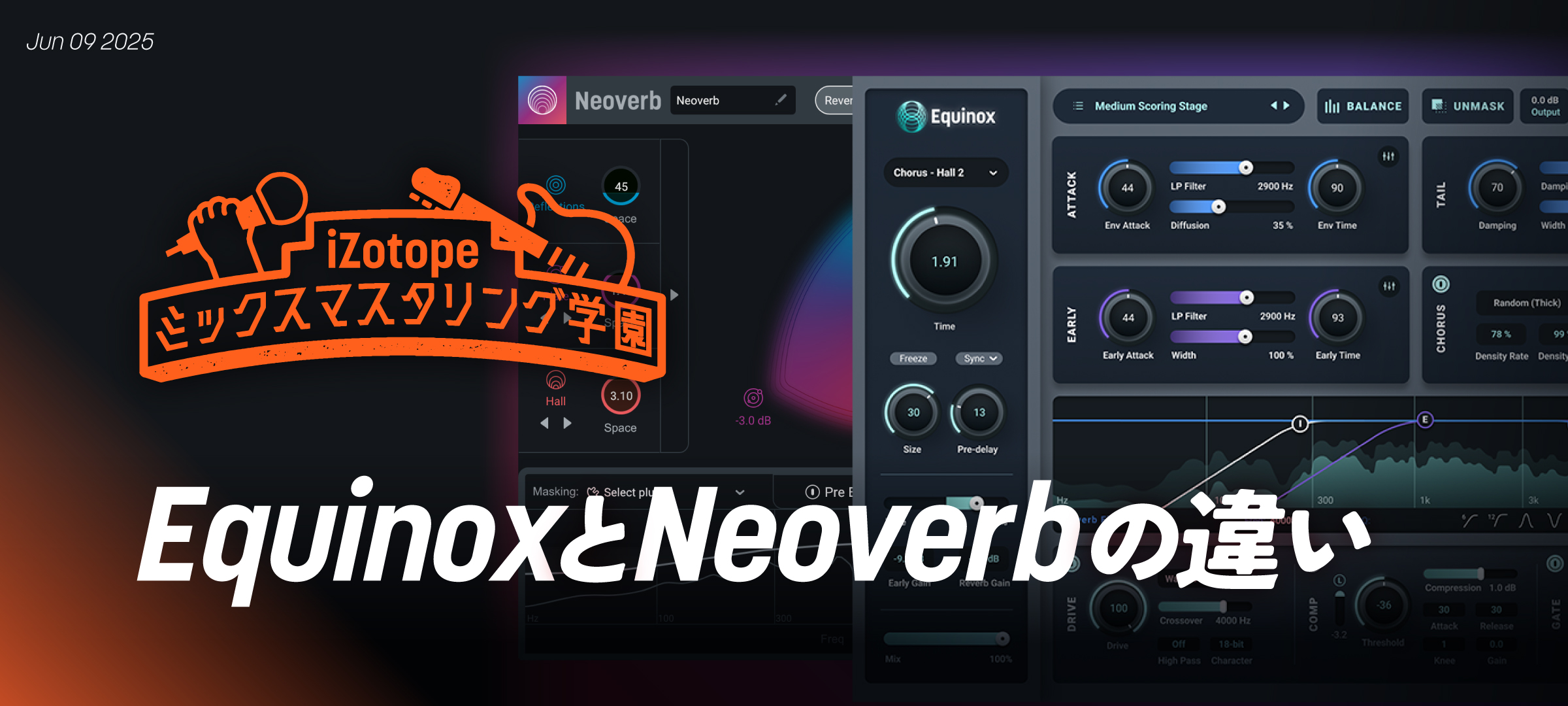 iZotopeにはフラッグシップリバーブEquinoxの他にNeoverbという、こちらも高機能なリバーブプラグインがあります。本記事では、これらが持つ機能的な違いと使い分けについて解説します。
