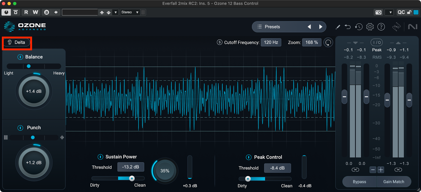 Deltaボタンを押すと、Bass Controlによって低域に生じた変化のみを聴くことができます。