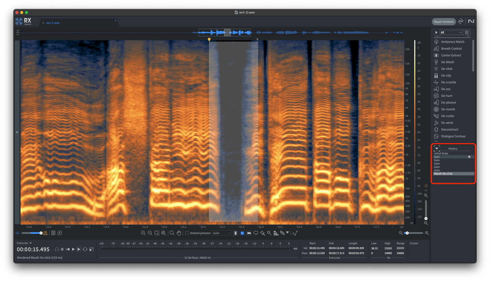 iZotope RX 11Audio Editorには、選択した部分のみをUndoすることができる「Restore selection」という機能があります。