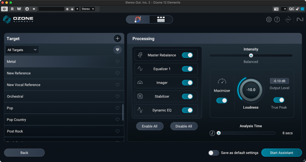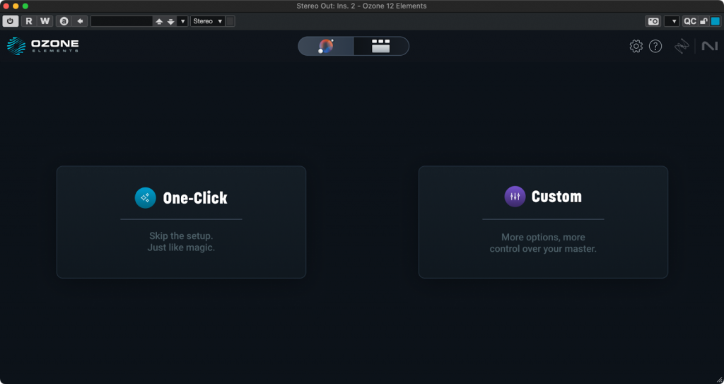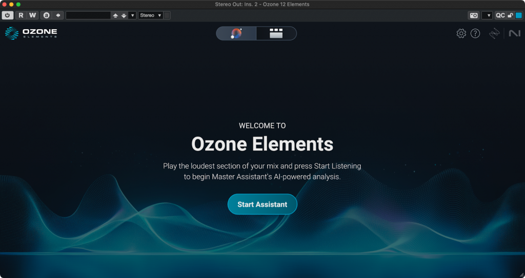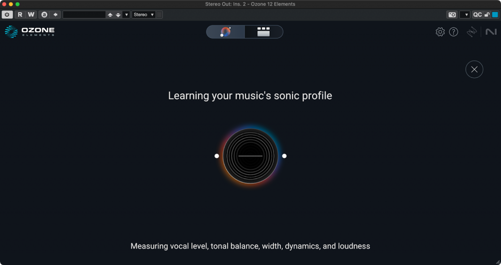 Ozone 12 Elementsをプロジェクトのマスターバスにインサートしたらこの画面が開きます。
