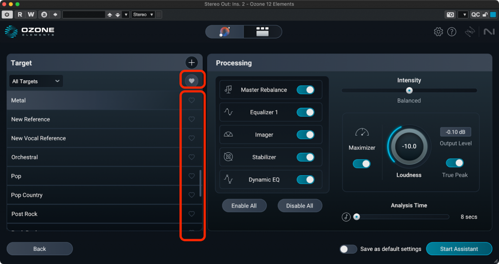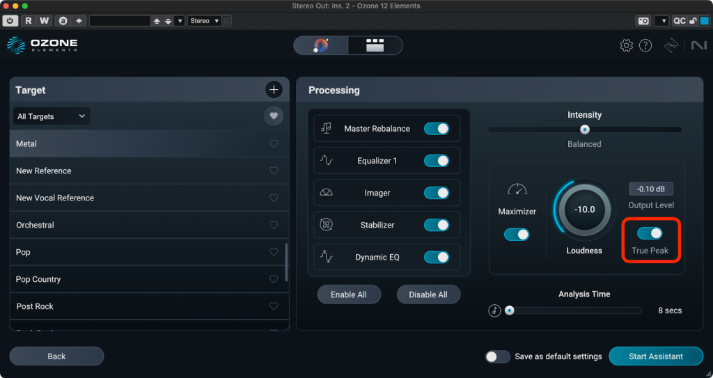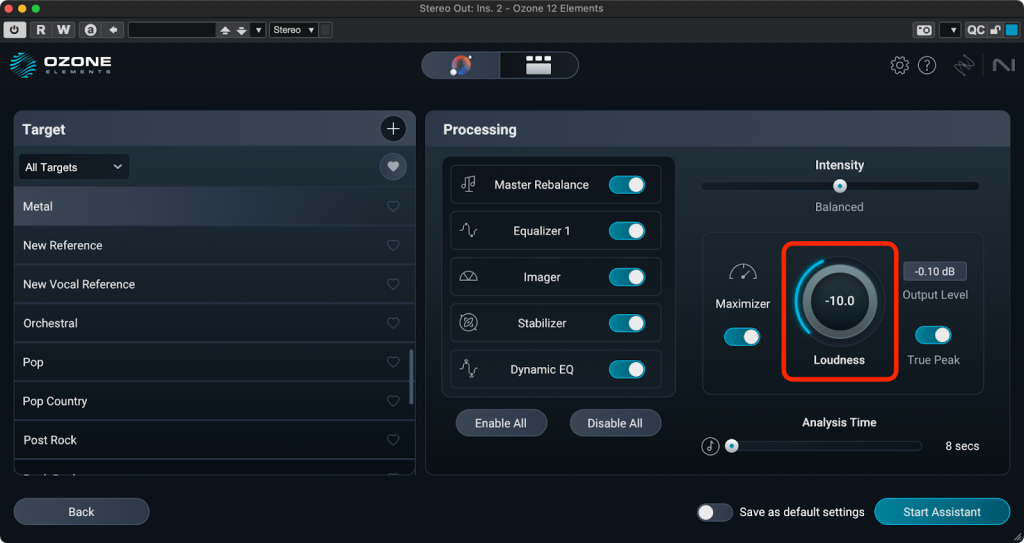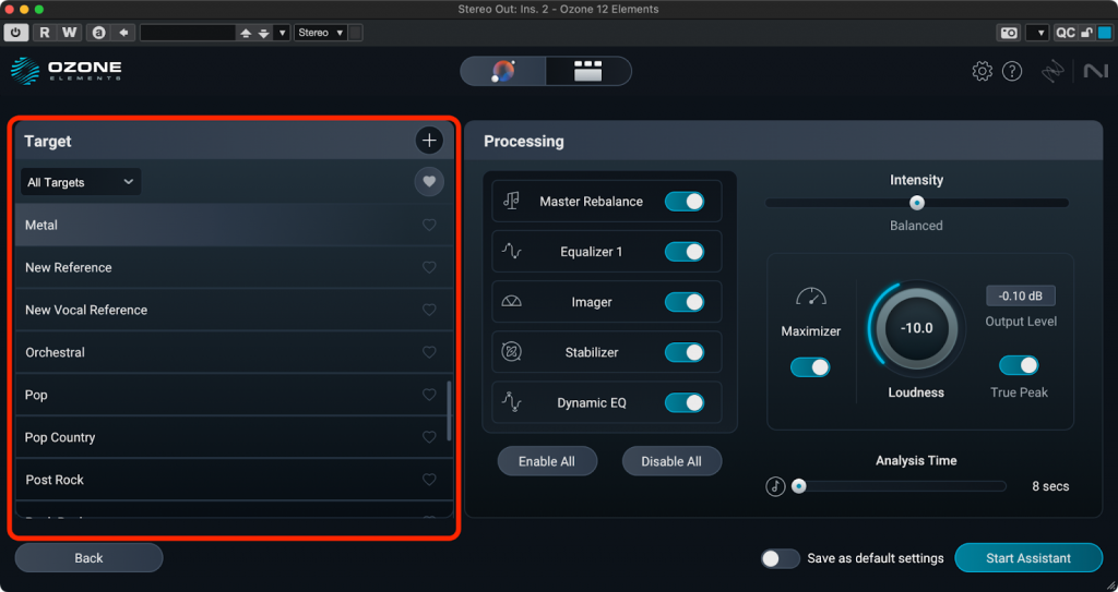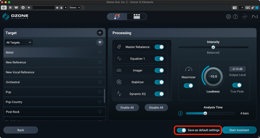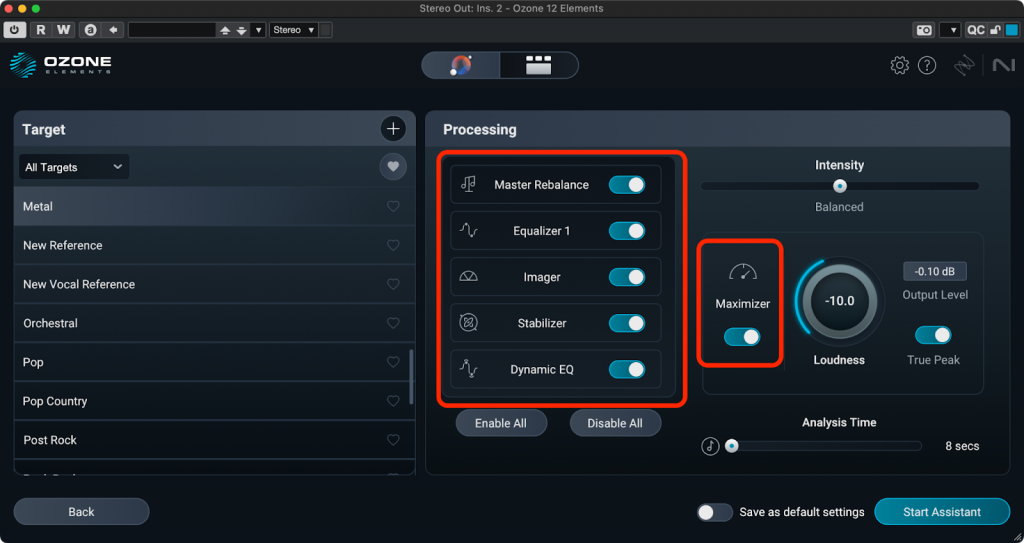 デフォルトではOzoneは収録されている全てのモジュールを使ってマスターを提案しようとしますが、使わなくてもいい機能がある場合はあらかじめチェックを外すことでOzoneのマスタリングの提案から除外することができます。