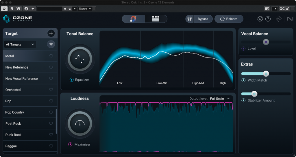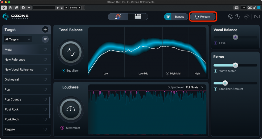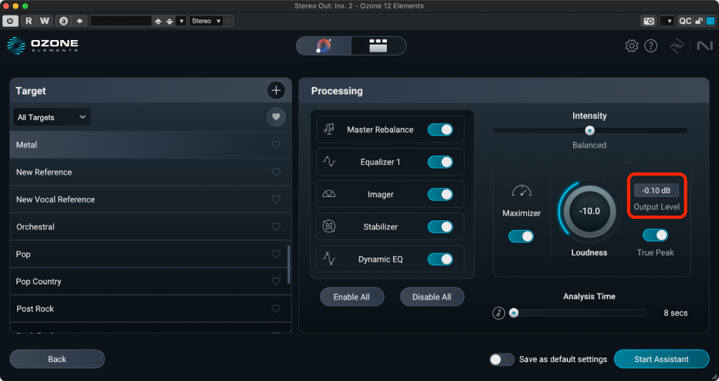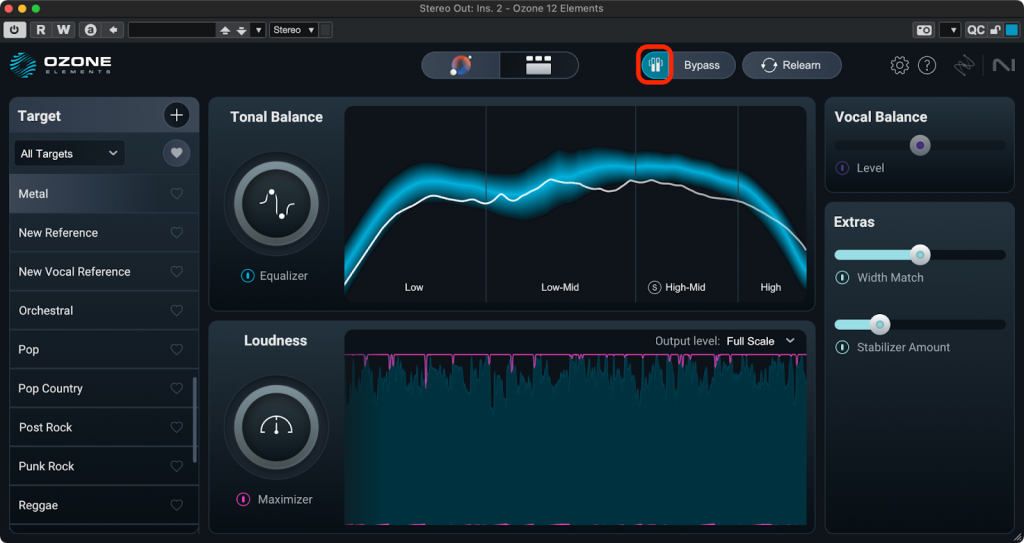 Ozoneを通る前と後の信号の音量を揃えて、Ozoneが引き起こした音の変化だけに集中することができます。