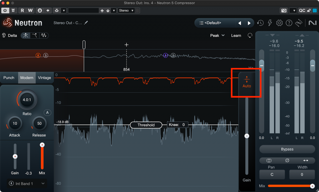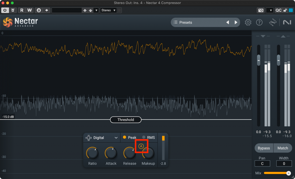 また、モジュール単位ではNeutronのCompressor、NectarのCompressor、OzoneのDynamics、Vintage Compressorにはリダクションさせた分だけ自動的にレベルを持ち上げる機能があります。