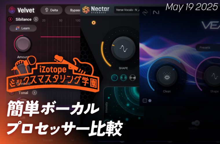 ボーカル/ダイアログ用に新しくCatalystシリーズのVelvetがリリースされましたが、iZotopeには他にも近い用途のツールとしてNectar 4 Elements、VEAがあります。 それぞれの特徴を解説する前…