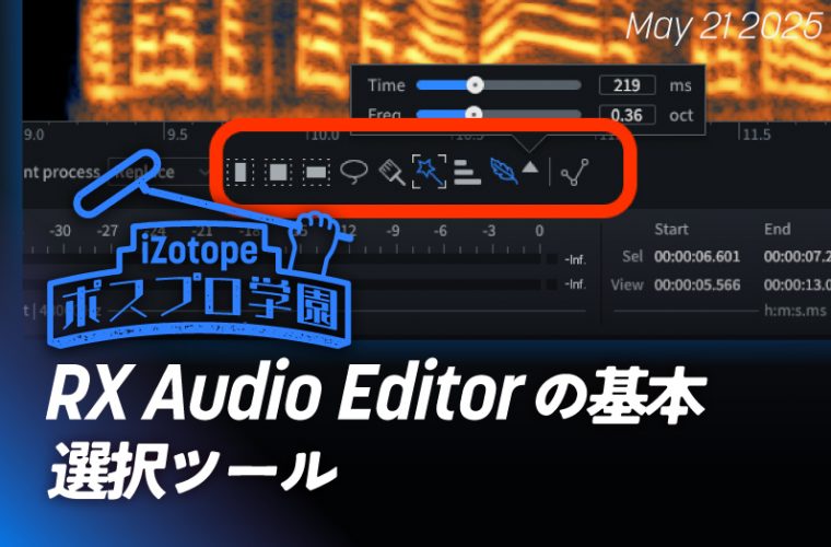 RX Audio Editorには、編集箇所を選択するための方法が複数あります。選択ツールを使いこなすことでRXでの編集スキルは、格段に上げることができます。この選択ツールに関して解説していきましょう。 時間選択ツール …