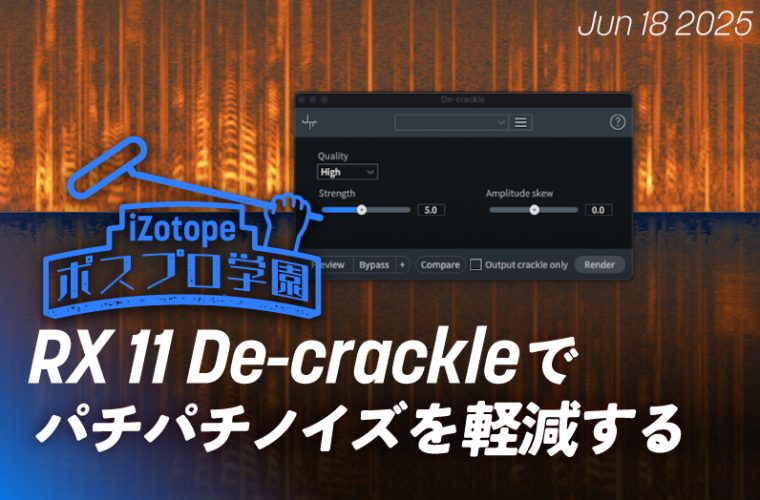 RX11 De-crackleでは、たき火の木がパチンとする音やレコードのノイズなど、パチパチする音のノイズを軽減することができます。 RX11 De-crackleの使用方法を解説していきましょう。 使用方法 モジュー…