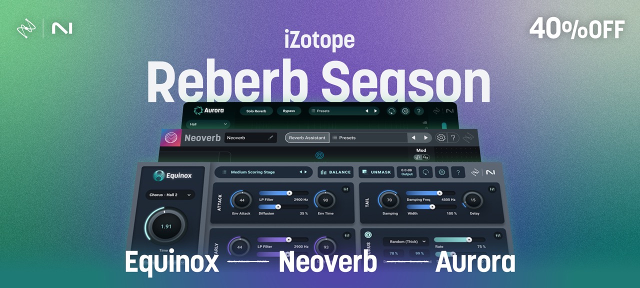 iZotopeのリバーブ製品3つが対象となる「iZotope Reverb Season」を開催いたします。