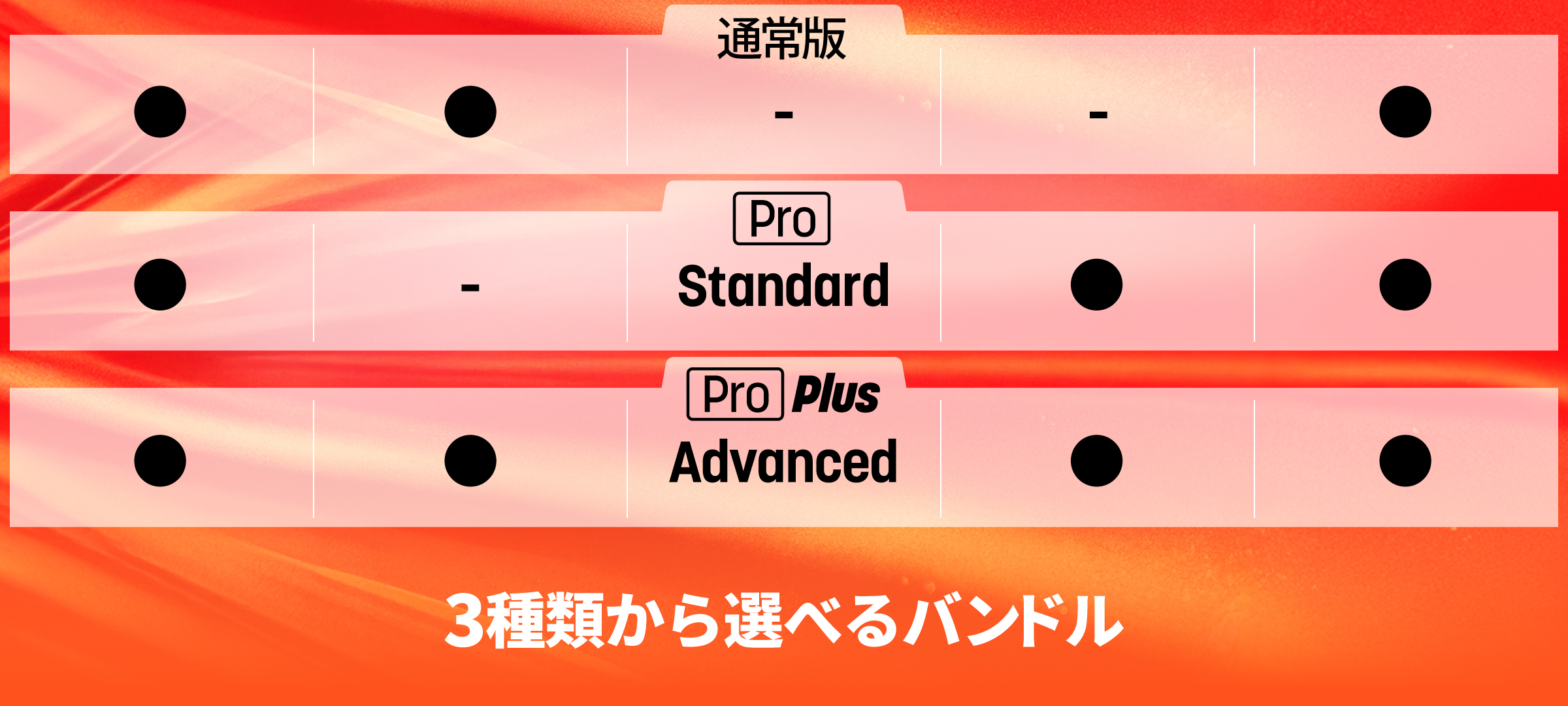 用途やご予算に合わせて3つのエディションをご用意いたしました。
