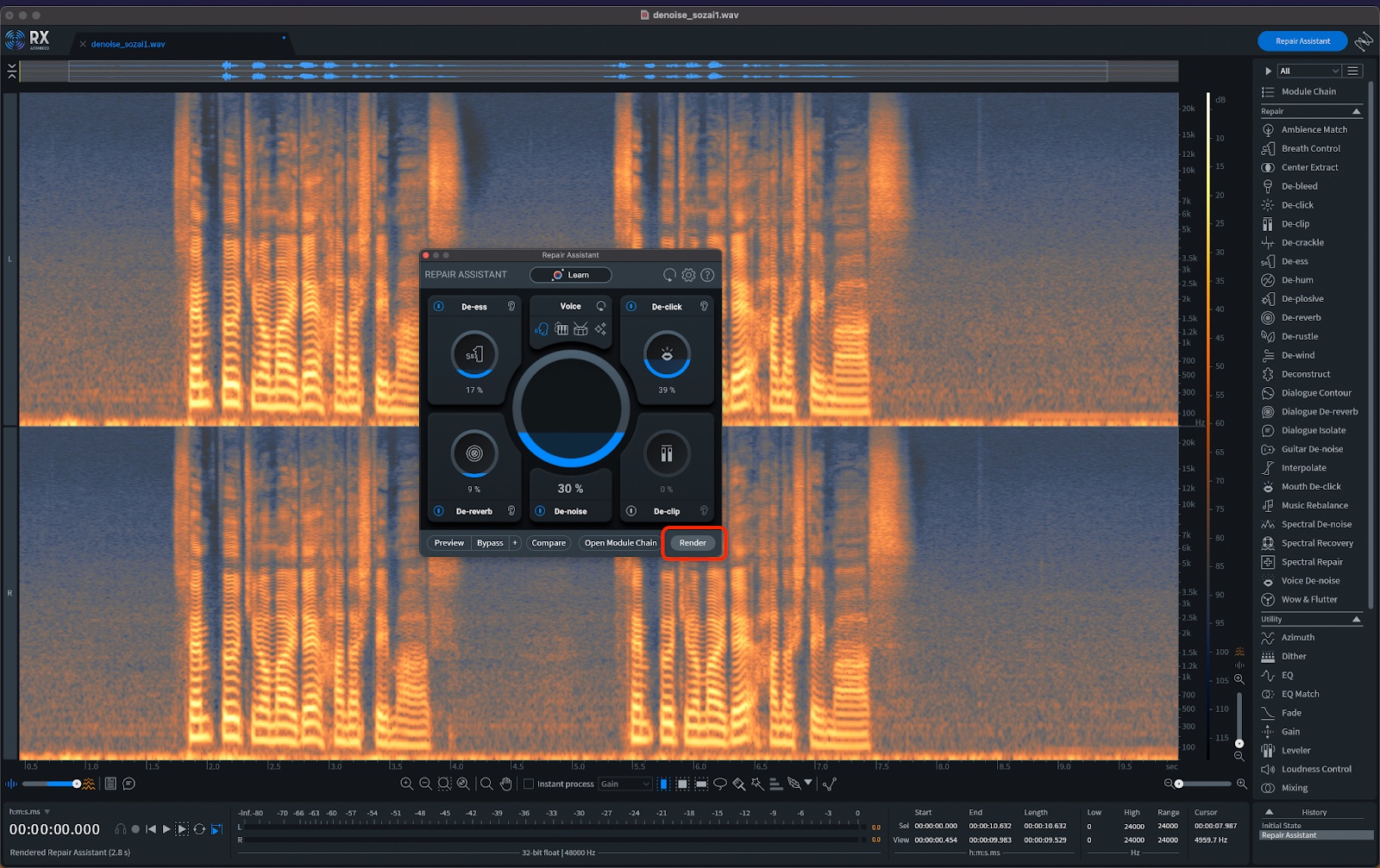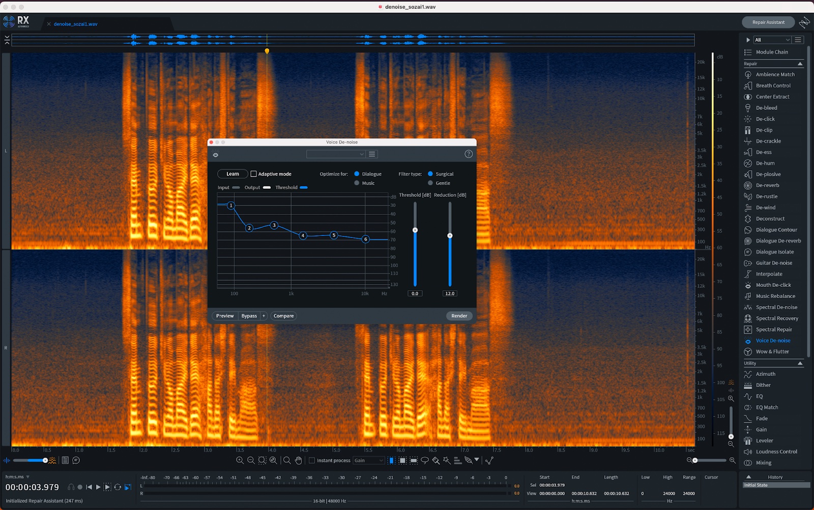 Repair assistantはバックグラウンドノイズ以外にも、リップノイズや音の響きも一度に軽減できる万能なモジュールです。バックグラウンドノイズ以外のノイズも一度に軽減したいときはRepair assistantがお勧めです。