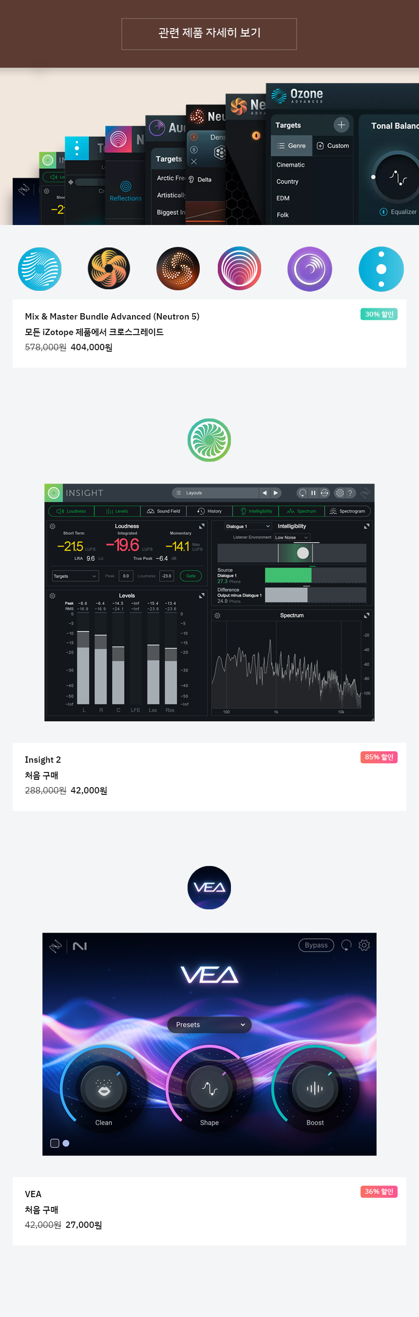Valentine’s Day 플래시 세일을 안내드립니다. 한정 기간 동안, inSight 2와 VEA, 그리고 기존 iZotope 유저들을 위한 Mix & Master Bundle Advanced 크로스그레이드 제품을 할인된 가격에 구입하실 수 있습니다.