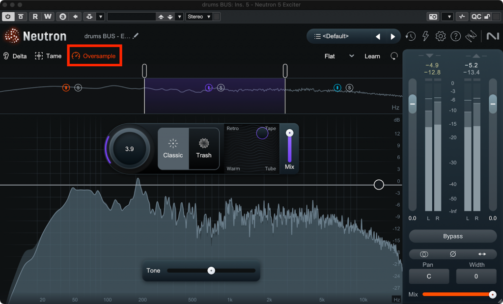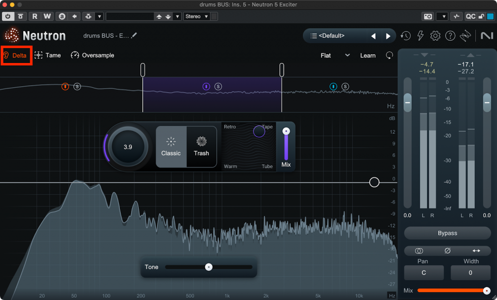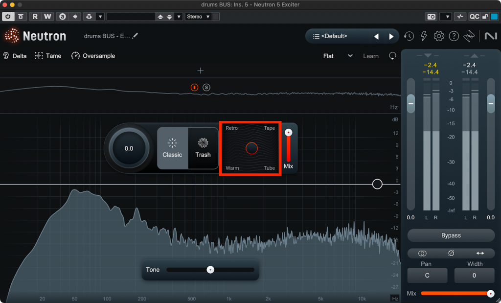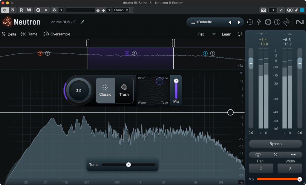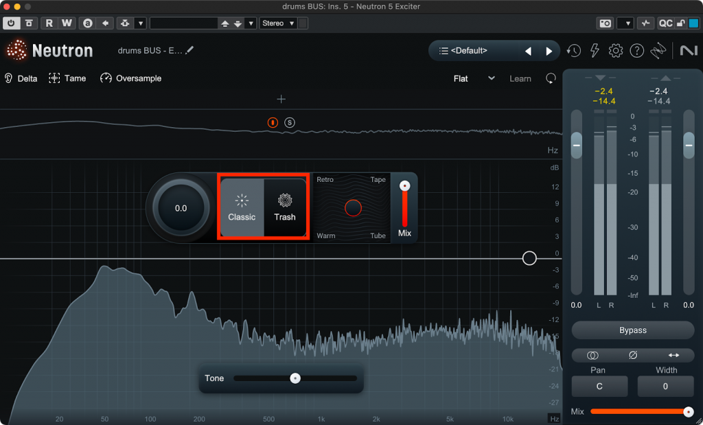Neutron 5 ExciterにはClassicとTrashという2つのモードがあり、Classicの方がさりげない歪みを加えるのに対してTrashモードでははっきりとわかりやすく歪みを加えていきます。