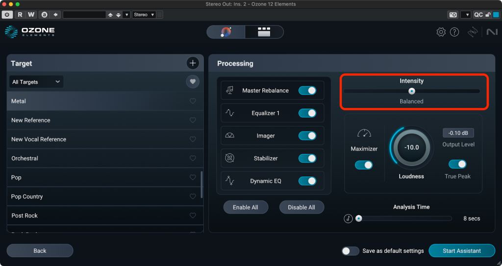 IntensityではMaster Assistantの処理をどのくらい積極的にかけるかを設定します。