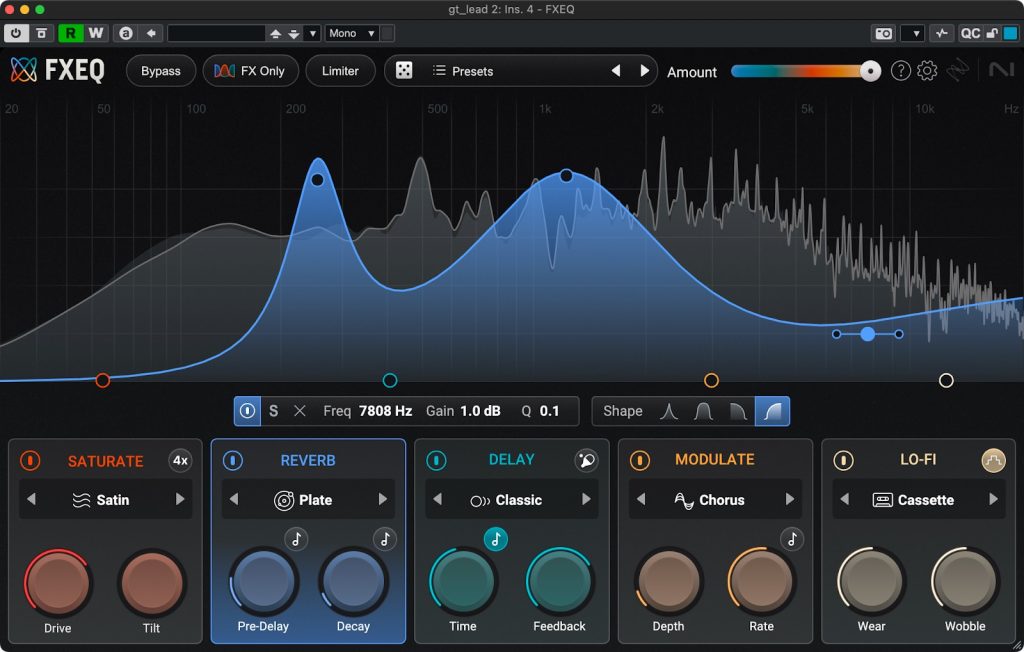 もちろん、AuroraもAuxでセンドでかけてSolo Reverbをオンにした状態で例えばNeutronのEQを使って周波数特性を変化させれば似たようなことは実現できるかもしれませんが、そのための手間、手数を考えるとFXEQの方が手軽で直感的と言えるでしょう。
