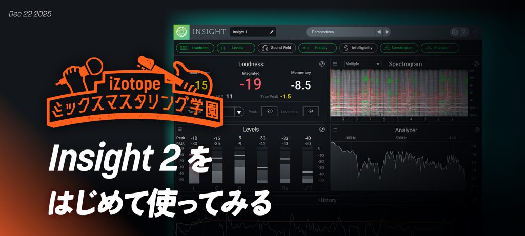 ラウドネスからピーク、RMS、ステレオイメージ、果てはスペクトログラムまでオーディオの様々な情報を確認することができるInsight 2ですが、本当に色んな情報を見ることができるため初めてインサートした時にどこを見ればいいか戸惑うことがあるかもしれません。